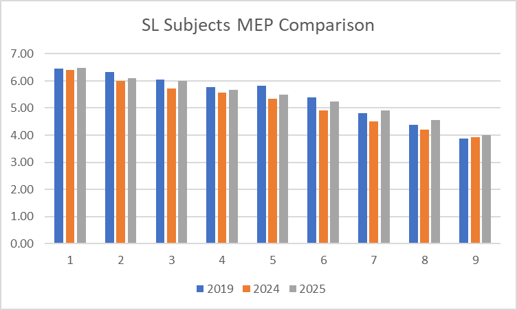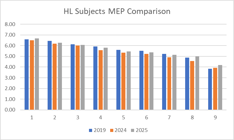 2025 IB - Comparison of MEPs for 2019, 2024 and 2025