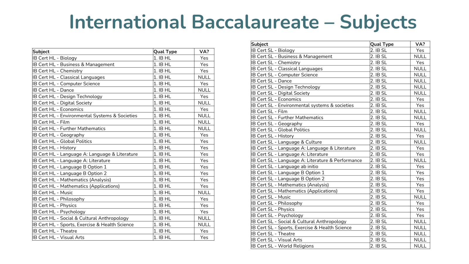 2025 IB - Subject coverage