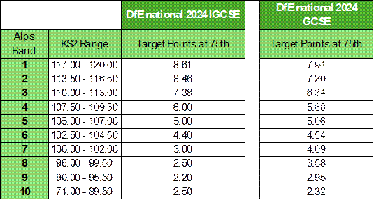 higher minimum expected points for IGCSE in these bands suggest that students